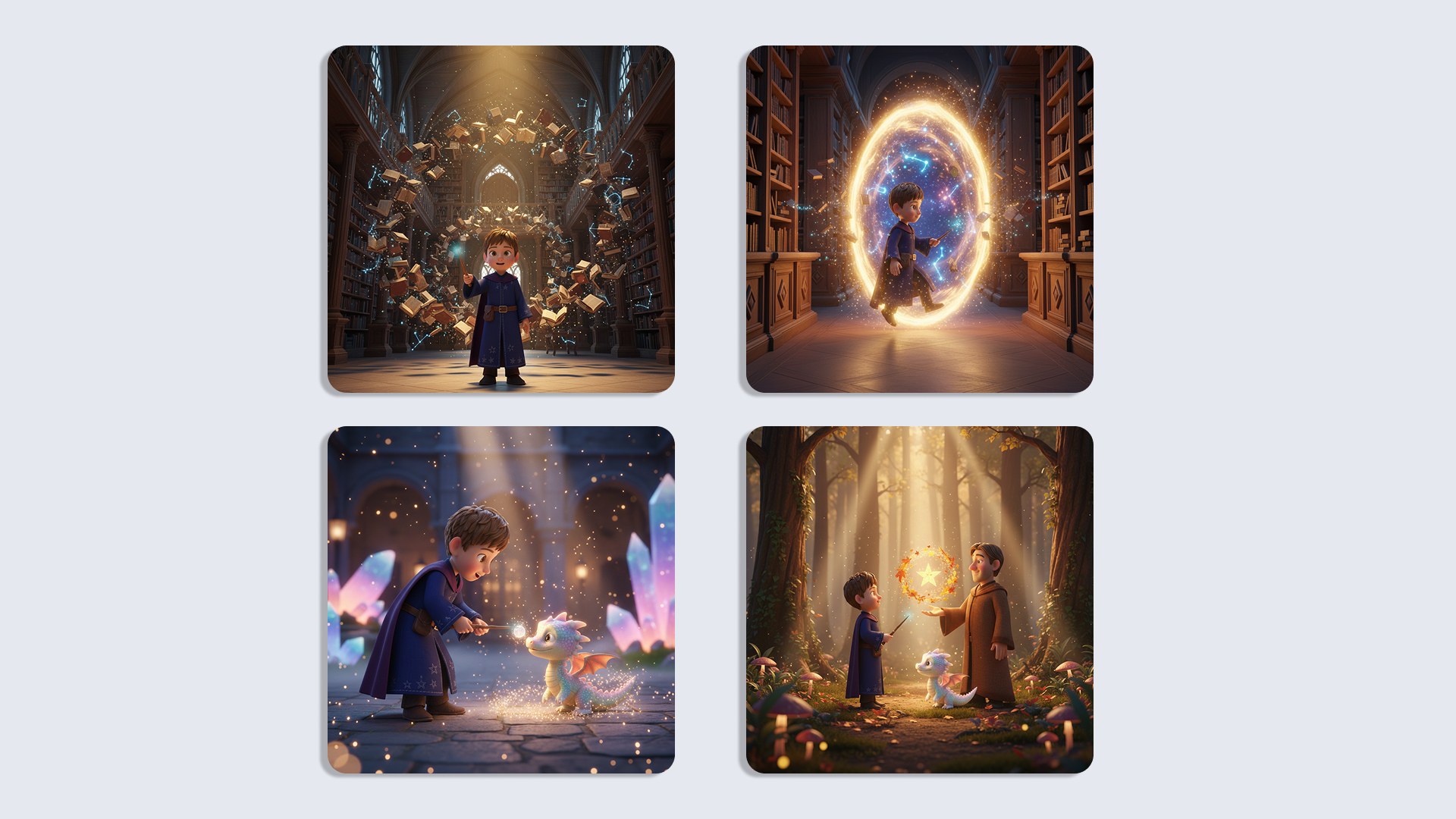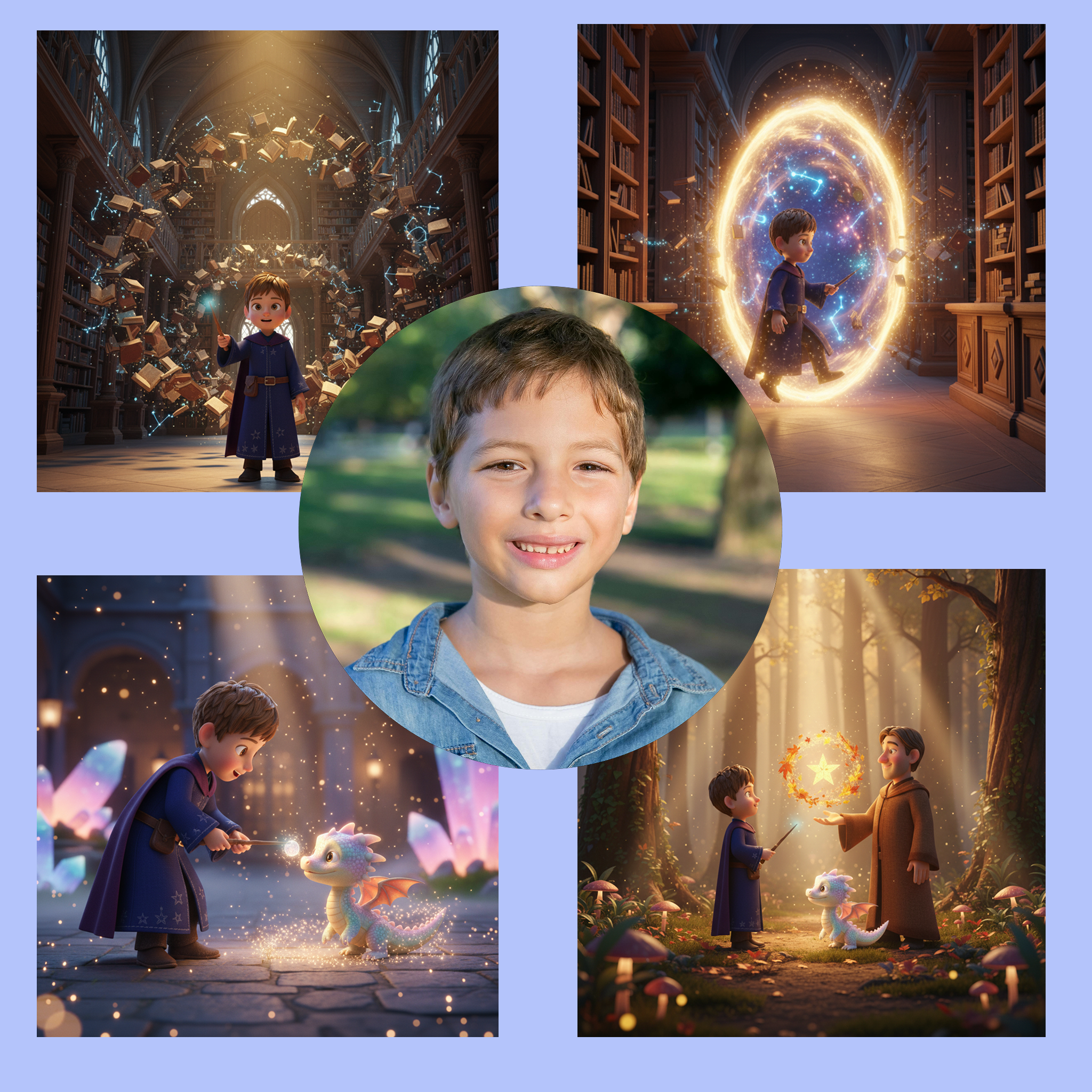 In dieser personalisierten Magiegeschichte entdeckt dein Kind eine geheimnisvolle Bibliothek, in der Bücher schweben und Sterne zwischen den Regalen funkeln.